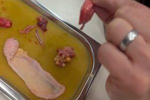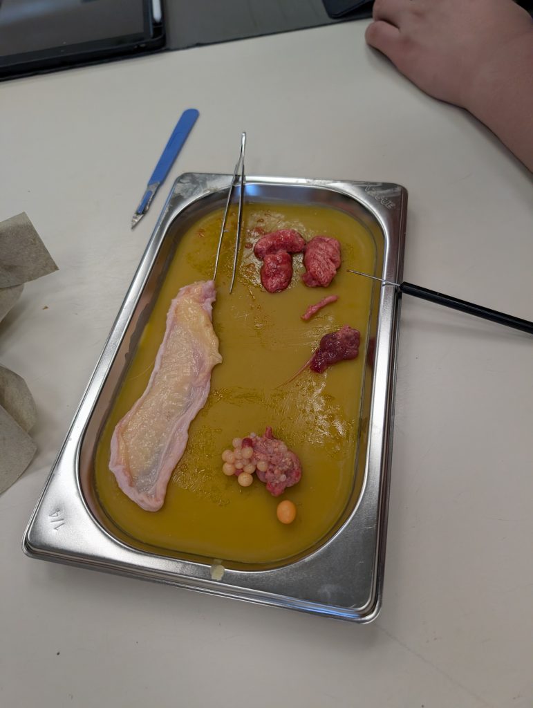 Im Wahlpflichtkurs Angewandte Naturwissenschaften der Klasse 10 stand eine praktische Präparation von Suppenhühnern auf dem Programm. Inhaltlich ging es um Muskeln, Faszien, Knochen und Gelenke – direkt am echten Objekt.
