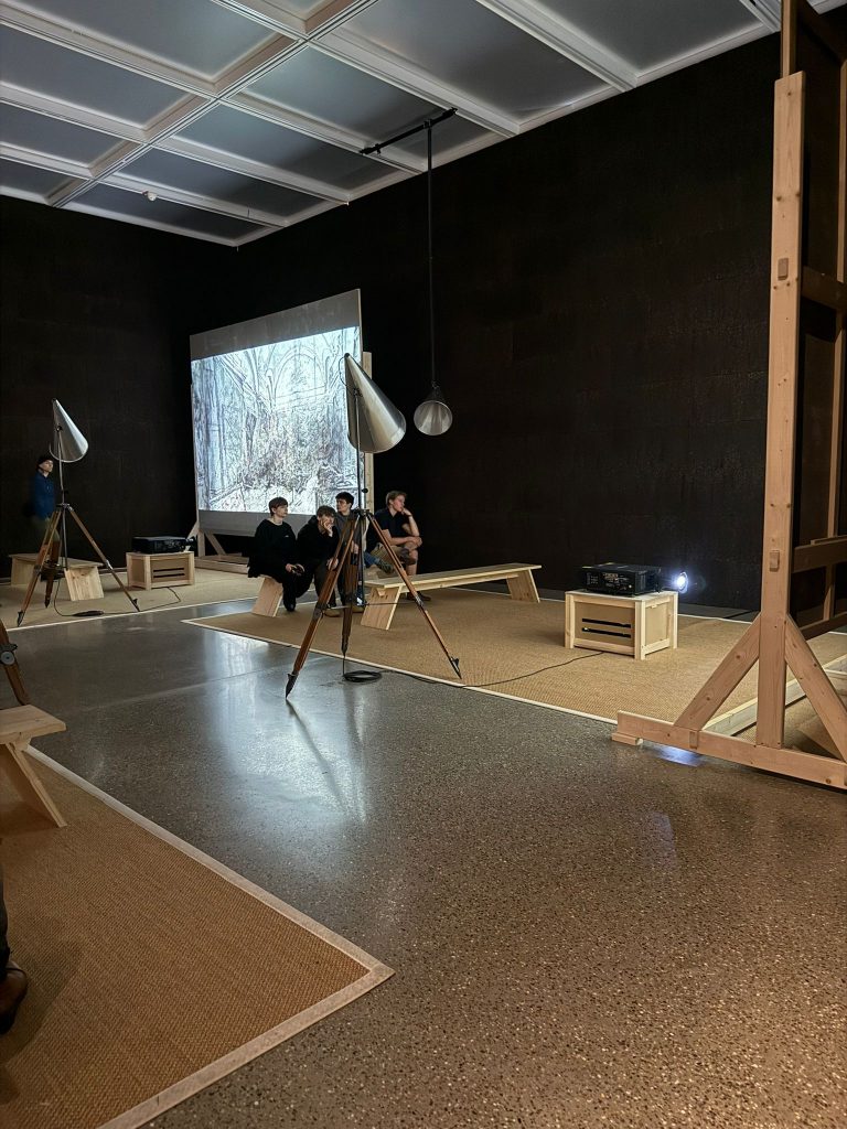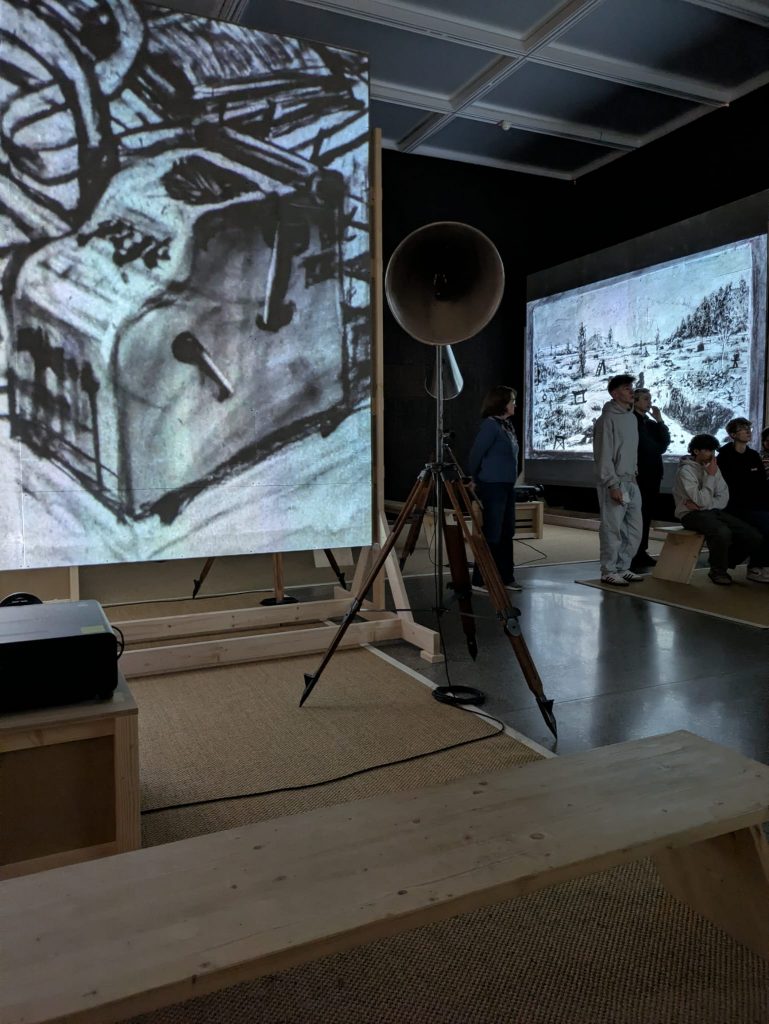 Der Besuch der Ausstellung „William Kentridge – Listen to the Echo“ im Museum Folkwang war für unsere beiden Grundkurse ein eindrucksvolles, teils überwältigendes Erlebnis. Die Fülle an visuellen Eindrücken gepaart mit ungewohnten Geräuschen, die imposanten Formate und die vielschichtigen filmischen Arbeiten verlangten unsere volle Aufmerksamkeit – viele Filme müsste man wohl ein zweites Mal sehen, um ihren gesamten Raum und ihre Bedeutung zu erfassen.